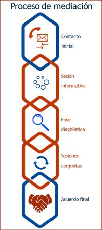 Encuentros guiados por el mediador en un entorno seguro y confidencial. Se fomenta el diálogo, se generan opciones y, si es necesario, se realizan caucus (reuniones privadas).